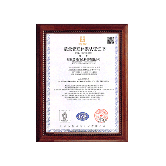 公司一直以來(lái)嚴(yán)格執(zhí)行ISO9001質(zhì)量體系和ISO14001環(huán)境管理體系標(biāo)準(zhǔn),建立了完備的科研、開發(fā)、生產(chǎn)、銷售服務(wù)體系。公司是浙江省門業(yè)協(xié)會(huì)會(huì)員單位,江山門業(yè)協(xié)會(huì)理事單位,中國(guó)木材與木制品流通協(xié)會(huì)會(huì)員單位,江山市消防協(xié)會(huì)副會(huì)長(zhǎng)單位。